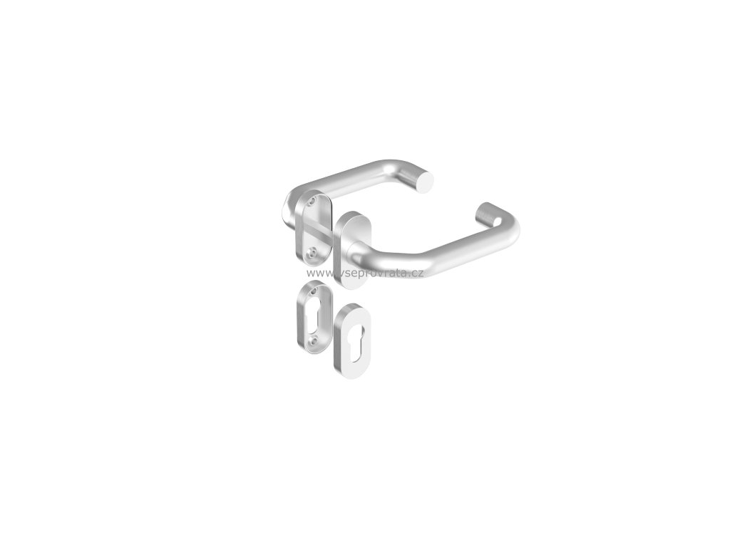Sada páru klik z broušené nerezi K320 / AISI304 s oválnou rozetou, včetně rozety na cylindrickou vložku.