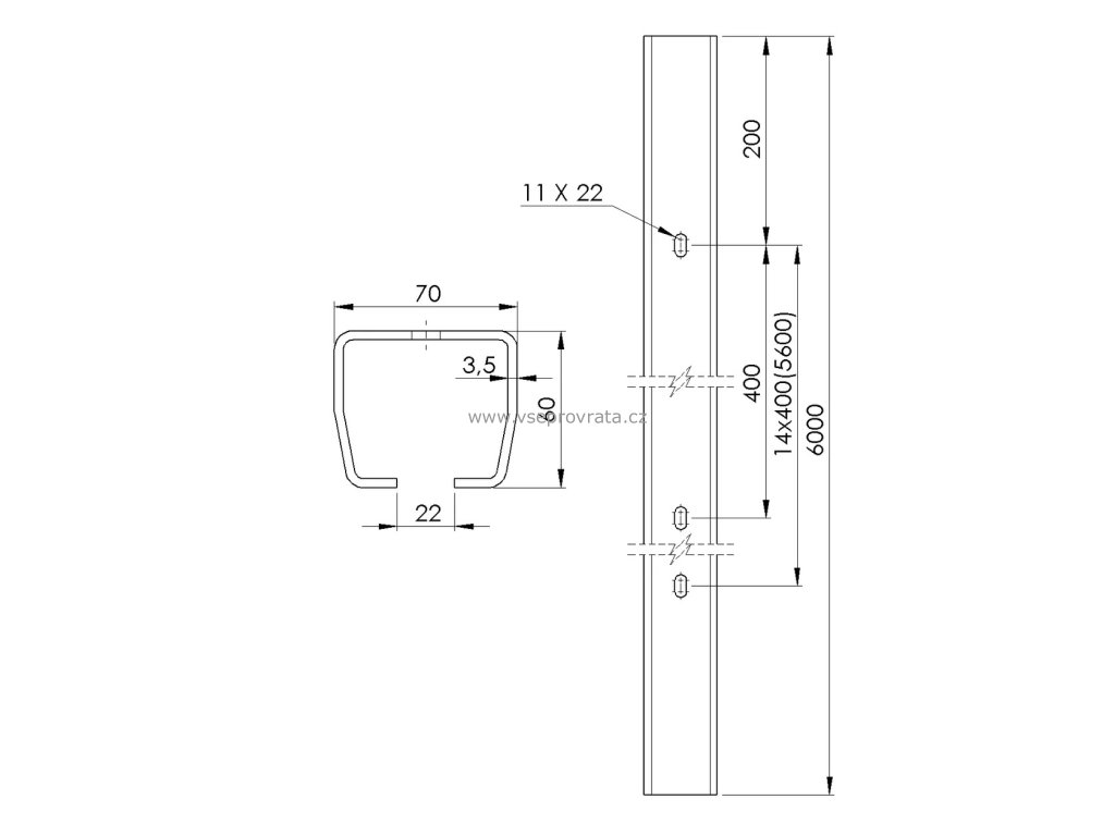 - šína "C" profil 70 x 60 x 3,5 mm, zinkovaná s montážními otvory - 6 m