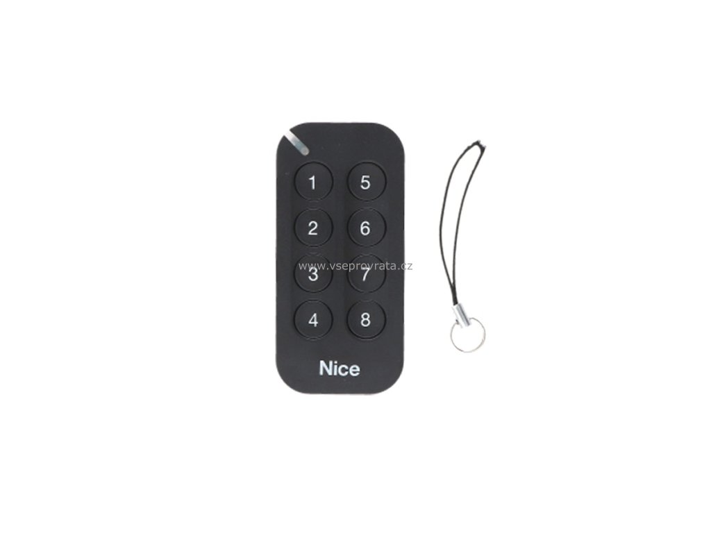 Vysílač dálkového ovládání pro ovládání až osmi pohonů nebo funkcí, frekvence 433,92 MHz, digitální plovoucí kód (vysoký stupeň zabezpečení). Ovladač je plně kompatibilní s ovládáním NICE řady FLO.R (RE), ON, WAY ...